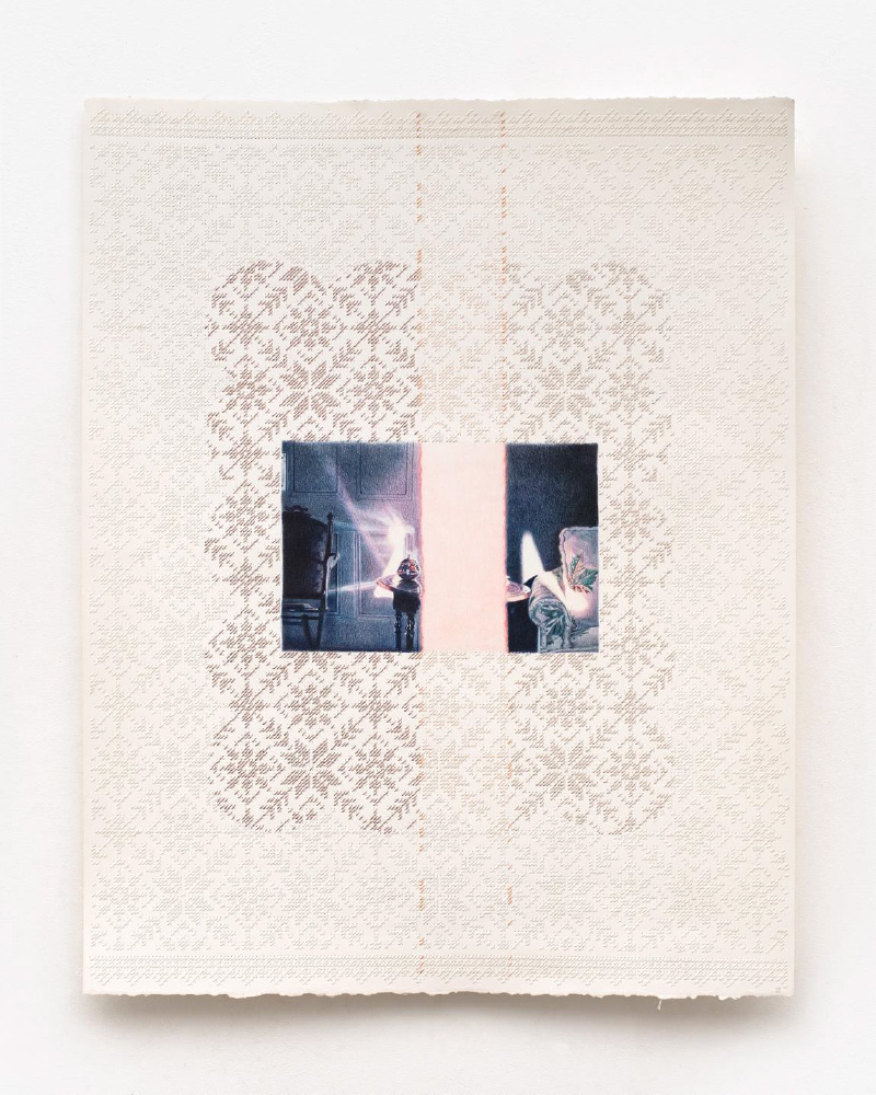 El dibujo y el bordado —técnicas que emplea de manera simultánea— profundizan esta dimensión afectiva y nostálgica. El dibujo, nuestro primer lenguaje, y el bordado, oficio heredado que evoca gestos maternos y saberes transmitidos entre generaciones, se entrelazan en su obra para reivindicar prácticas que por momentos quedaron relegadas, opacadas por la velocidad tecnológica o la falta de tiempo. En el cruce de ambas técnicas, Schwarzhaupt devuelve valor a lo manual, lo íntimo y lo humano: una búsqueda de raíces y huellas en un mundo que avanza hacia la inmaterialidad.