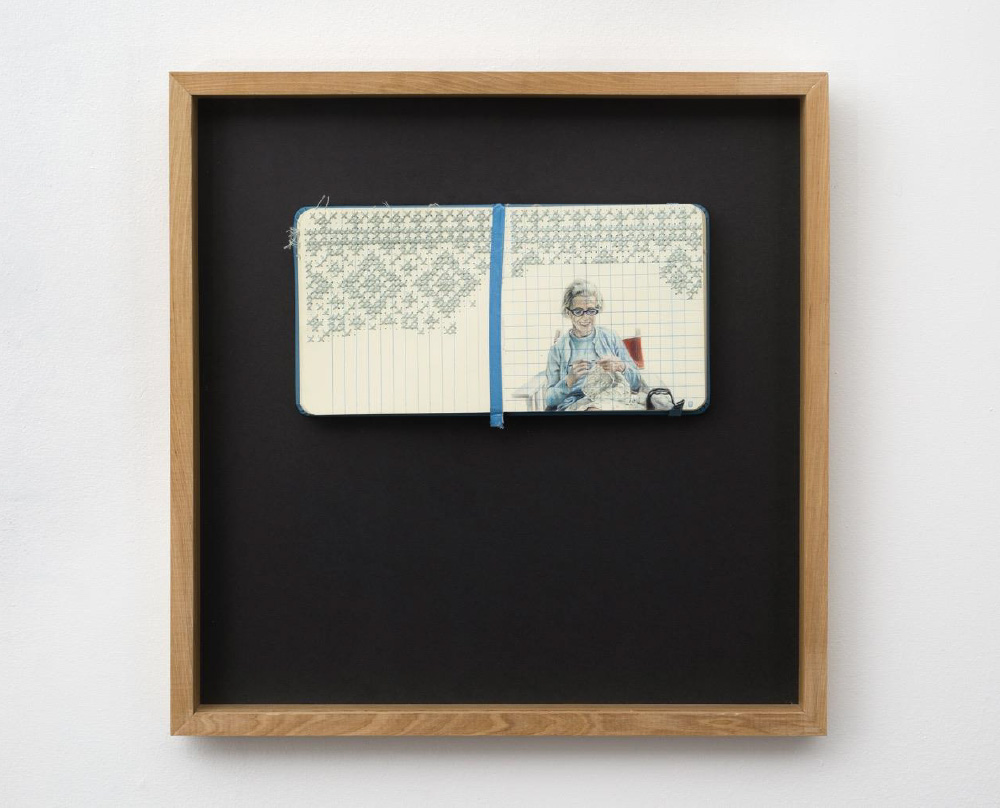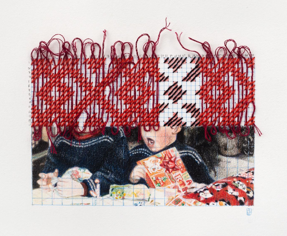 El dibujo y el bordado —técnicas que emplea de manera simultánea— profundizan esta dimensión afectiva y nostálgica. El dibujo, nuestro primer lenguaje, y el bordado, oficio heredado que evoca gestos maternos y saberes transmitidos entre generaciones, se entrelazan en su obra para reivindicar prácticas que por momentos quedaron relegadas, opacadas por la velocidad tecnológica o la falta de tiempo. En el cruce de ambas técnicas, Schwarzhaupt devuelve valor a lo manual, lo íntimo y lo humano: una búsqueda de raíces y huellas en un mundo que avanza hacia la inmaterialidad.